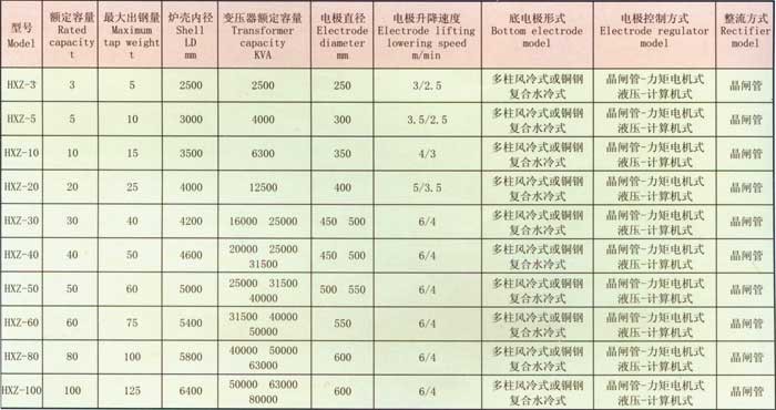 HXZ系列直流電弧爐主要技術(shù)參數(shù)