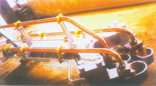 1、導(dǎo)電橫臂供水,回水由設(shè)計確定進出水管尺寸,也可按用戶要求于水冷電纜串聯(lián)使用; 2、電極分布圓中所列尺寸為本裝置可以提供的分布圓尺寸; 3、新設(shè)計電弧爐,鋼包爐可按用戶要求提供導(dǎo)電橫臂;定貨時請?zhí)峁?br />
