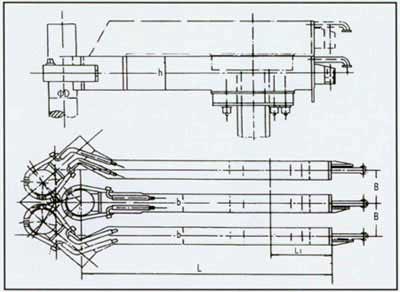 e、橫臂與電極立柱聯(lián)結(jié)形式及尺寸;
